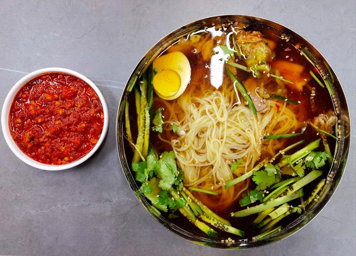 3、烤冷面,起源于韩国,是一种将冷面用烤的方式烹饪后搭配特制酱料食用的美食。烤冷面的酱料是其独特风味的关键所在,不同的酱料能给烤冷面带来不同的口感和风味。