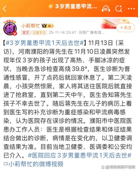 第二天凌晨,孩子突然离世。病历上补充写着“重症感染和甲流病毒感染”。一个鲜活的小生命,从发病到死亡,仅有一天多时间。