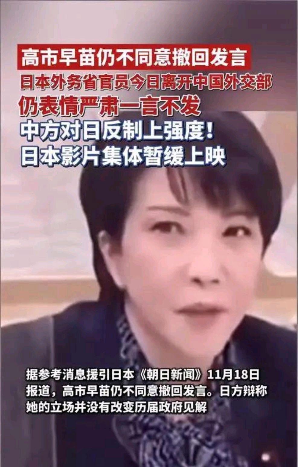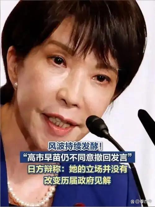这事儿还得从高市早苗的“台湾有事”发言说起。她这一番言论,就像一颗“炸弹”,在国际社会炸开了锅。大家都在等着她“认怂”撤回发言,结果她倒好,那叫一个“头铁”,坚决不撤回,还振振有词地说自己立场没变,和历届政府见解一样。这就好比一个人闯了祸,还死不承认,非要嘴硬说自己没错,这不是“死鸭子嘴硬”嘛!