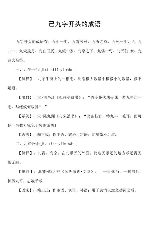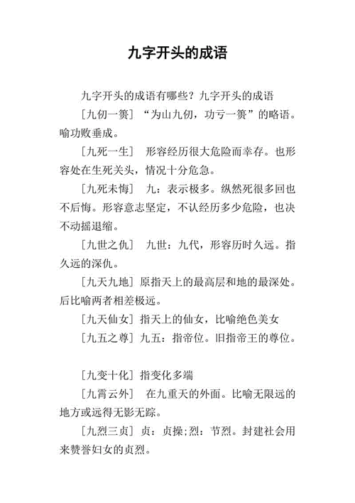 关于九字开头的成语有哪些成语和九字开头所有成语大全的介绍到此就结束了,不知道你从中找到你需要的信息了吗 ?如果你还想了解更多这方面的信息,记得收藏关注本站。