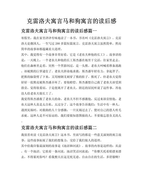 本篇文章给大家谈谈克雷洛夫寓言的经典故事,以及克雷洛夫寓言经典故事读后感对应的知识点,希望对各位有所帮助,不要忘了收藏本站喔。