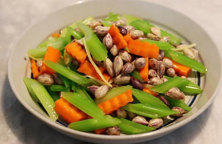 花生米凉拌芹菜特点:营养丰富,饱腹解腻做法:花生米浸泡2小时,加八角、花椒、盐煮20分钟,再泡1小时入味。芹菜、胡萝卜丁焯水(加几滴油保持色泽),过凉水后沥干。混合花生米、蔬菜,加盐、鸡精、生抽、醋、芝麻拌匀。贴士:可替换腐竹或黄瓜增加口感。