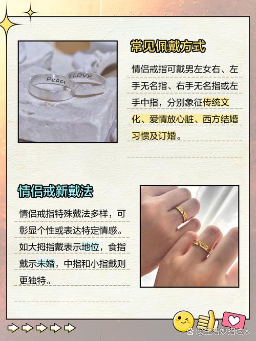 6、个性选择:食指佩戴适合追求独立个性的情侣,食指佩戴象征“独立自主的恋爱关系”,可选择设计感强的对戒。注意事项一是舒适度优先,要根据手型和戒指宽度调整,避免过紧影响血液循环,剧烈活动时建议取下;二是意义自定,戒指戴法无绝对规则,核心是双方对彼此关系的认可,可结合日常习惯灵活选择。