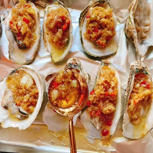 3、烤生蚝要加蒜蓉和辣椒等调料才会更加美味。以下是一些详细的做法和建议:调料准备 蒜蓉:将蒜剁成蓉状,这是烤生蚝的关键调料之一,能增添浓郁的蒜香味。辣椒:选择新鲜辣椒并切小,辣椒的辣味与蒜蓉的香味相结合,能够提升生蚝的口感层次。