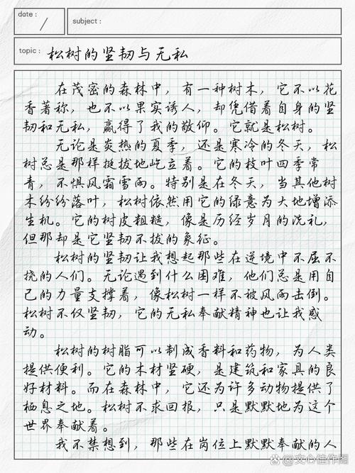 运用象征手法写一种植物的作文 快 离家不多远,有一片树林,林边是一座粼粼波光的水库,水墨绿色。我很喜欢到林子里散步,坐在树旁,凝神遐思;或站立水边的岩石上,伴涛声阵阵,极目远眺,别有一番情趣。 山坡上,两人合抱的松树,比比皆是。人站在树下向上看,树冠如伞盖,几朵白云飘动,真有挺天拔地的感觉。