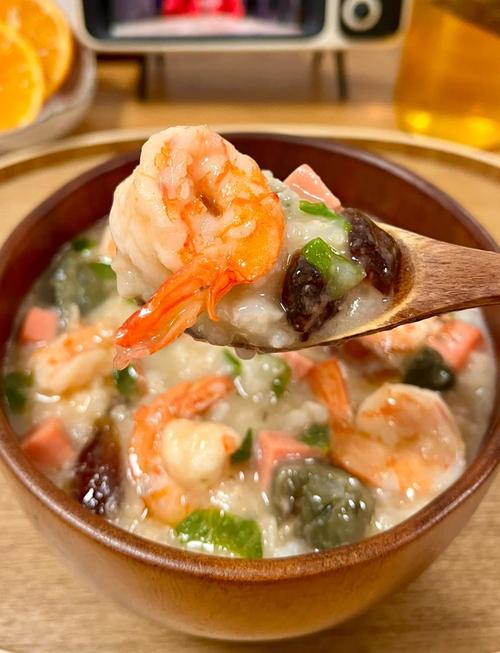 1、具体做法:准备食材:皮蛋:六边纵切块,以便更好地入味和分散在粥中。虾仁及干贝:选择新鲜或冷冻的虾仁均可,干贝则能增添粥的鲜美。饭与水:将水与饭按适当比例勾兑,以形成稀稠适中的粥底。瘦肉:适量瘦肉可以增加粥的口感和营养。调味料:食盐、鸡精或味精用于调味,芹菜切末用于点缀。