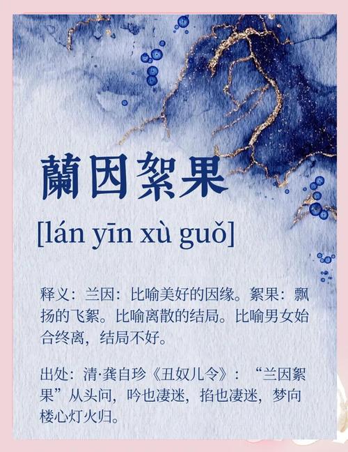 2、兰因絮果:比喻男女婚事初时美满,最终离异。兰因喻美好的结合,絮果喻离散的结局。前因后果:起因和结果,泛指事情的整个过程。食不果腹:指吃不饱肚子,形容生活艰难。其中,“果腹”指吃饱肚子。硕果仅存:比喻由于时间的推移,留存下来的仅存的人或事物。言行信果:说了就一定守信用,做事一定办到。