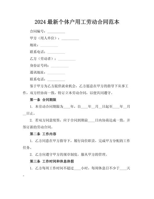 4、自2023年10月1日起,个体户是否不用签劳动合同需根据最新法律法规确定。这一说法可能基于某些政策调整或解读,但实际上,根据过往的《中华人民共和国劳动合同法》规定,所有在中国境内运营的企业、个体工商户、民办非企业单位等组织,在与劳动者建立劳动关系后,都必须与其签订书面劳动合同。
