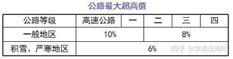 3、超高是指设置超高可抵消汽车在平曲线上行驶时产生的离心力,防止汽车向外倾覆。超高值过大不利于驾驶操作和行车安全,也不利于公路养护、施工;过小则不利于排水。不同级别的公路,超高横坡度的限制不同。