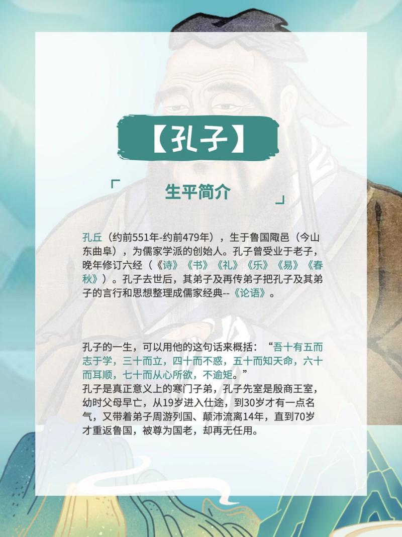 2、孔子父母的年龄差异:据《史记》等历史文献记载,孔子的父亲叔梁纥在孔子出生时已经70岁高龄,而他的母亲颜征在则年仅18岁。这种年龄上的巨大差异在当时的社会背景下是相当罕见的。