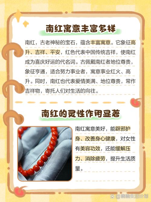 1、综上所述,女性佩戴南红玛瑙有着诸多好处,不仅可以美容养颜、调和气血,还能增强自信与魅力、寓意吉祥。在佩戴和保养南红玛瑙时,女性朋友们需要遵循一定的规则和禁忌,以确保其能够长久地保持美丽和功效。希望通过本文的介绍,您对南红玛瑙有了更深入的了解,并能够在日常生活中正确地佩戴和保养它,让它成为您生活中的一道亮丽风景线。