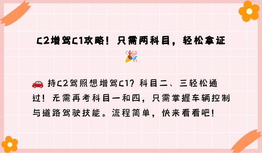 C1驾驶证持有者需要在取得C1驾驶证一年后,且满足一定条件,才能申请增驾B2驾驶证。以下是具体条件和要求的详细说明:时间要求 在取得C1驾驶证满一年后,C1驾驶证持有者才有资格申请增驾B2驾驶证。这一时间要求是从初次领取C1驾驶证之日起计算,满12个月后方可申请。