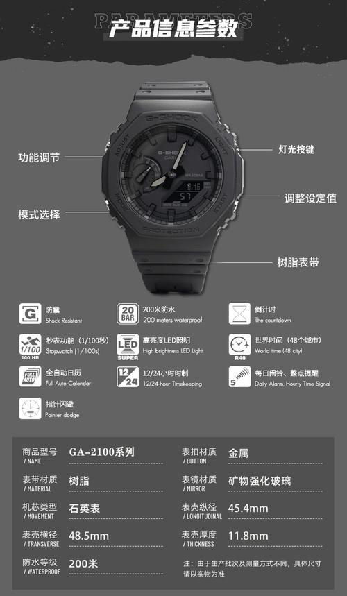 卡西欧功能最全最强大的型号较难绝对定义,不同系列在不同功能侧重上表现出色。G-SHOCK系列 G-SHOCK GA-110GB-1APR:它具备强悍的防震功能,能抵御剧烈冲击。拥有多功能指针与数字显示,可同时呈现时间、日期、星期等信息。内置世界时间功能,能显示全球48个主要城市时间。