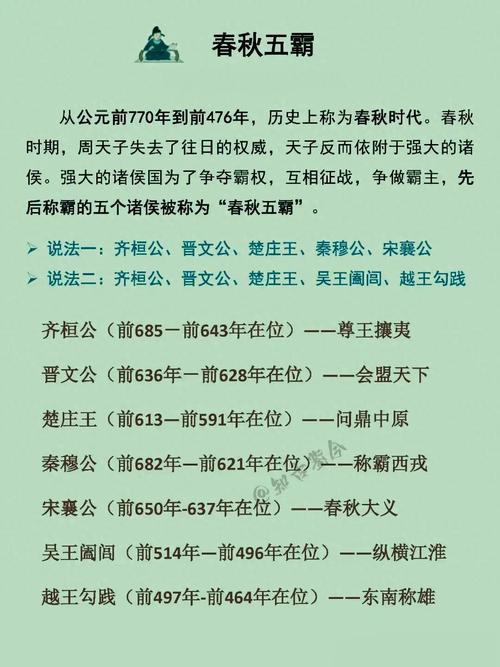 今天给各位分享春秋五霸指的哪五霸的知识,其中也会对春秋五霸指的哪五霸呢进行解释,如果能碰巧解决你现在面临的问题,别忘了关注本站,现在开始吧!