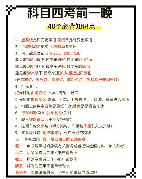 5、这段时间可以用来熟悉科目三的考试内容和要求。科目三到科目四:通过科目三考试后,学员也需要等待至少15天才能预约科目四的考试。科目四是理论考试,主要考察安全文明驾驶常识等内容。