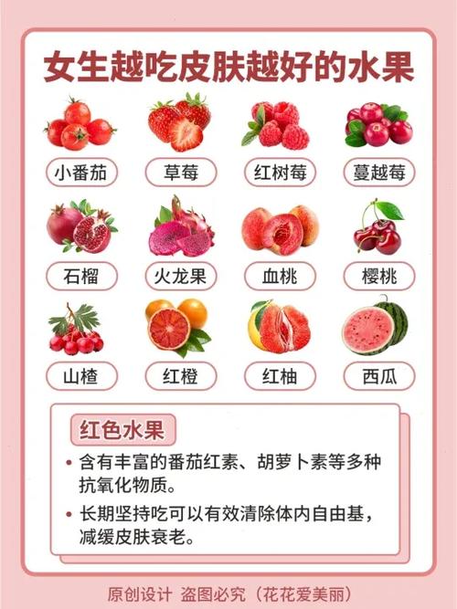 UVB)的伤害,进而防止皮肤癌的发生。因此,在出门前除了涂抹防晒霜外,最好再吃个苹果,为你的肌肤增添一层保护。综上所述,猕猴桃、草莓和苹果都是美容养颜的佳品。它们各自富含不同的营养成分和抗氧化剂,能够保持皮肤的健康与美丽。