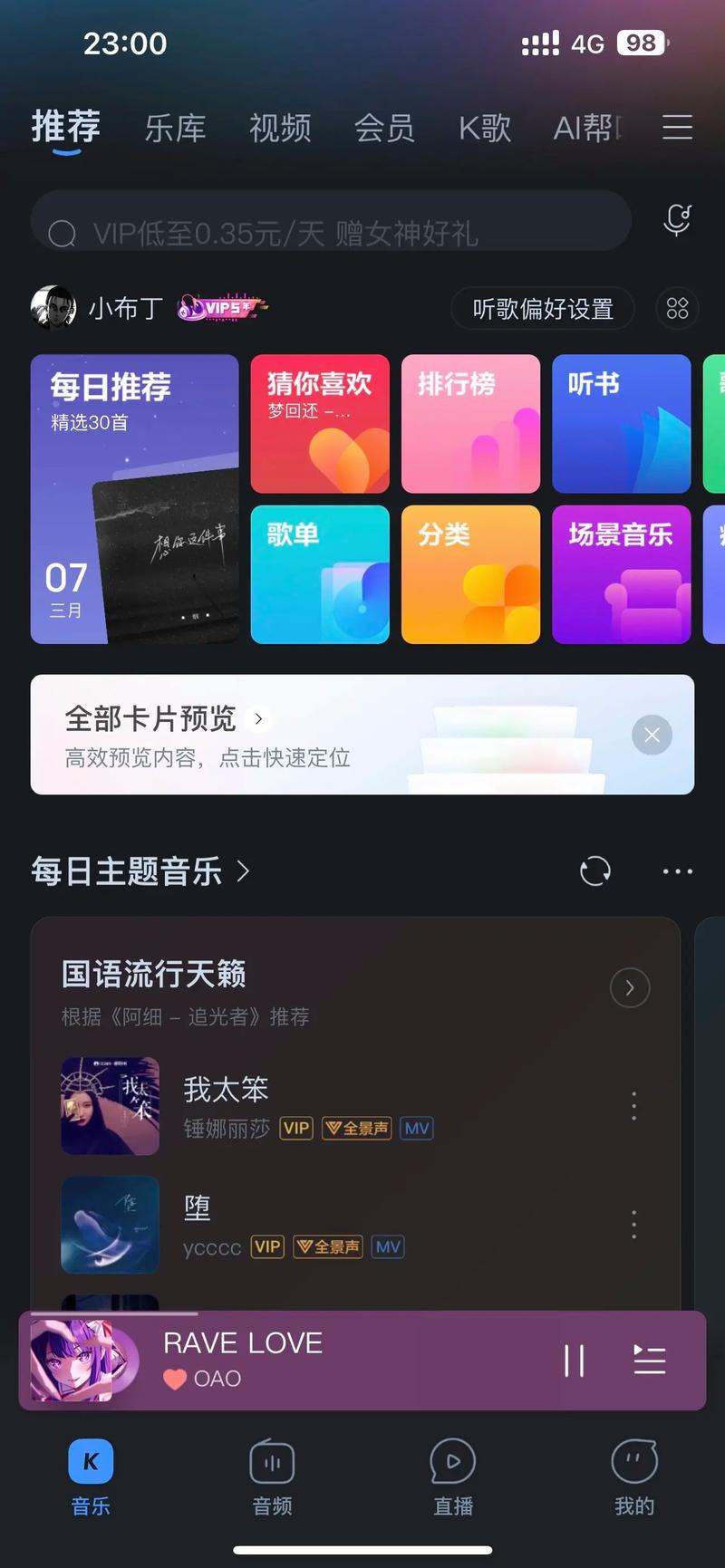 HiFi独占模式简介 定义:HiFi独占模式是一种专门设计用于提升音质效果的模式。在开启此模式后,声卡将被完全占用,从而避免其他声音(如噪音、网页通知、消息提醒等)干扰听歌体验。开启HiFi独占模式的步骤 打开酷我音乐:首先,在电脑上打开酷我音乐软件,进入其主界面。
