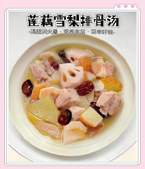 3、雪莲果和雪耳、莲子、百合、猪肉一起煲汤最好。这些食材搭配起来,具有清润降燥的作用。以下是具体的搭配及推荐理由:雪耳:雪耳富含胶质,与雪莲果一起煲汤,能够增加汤品的润滑感,同时也有助于滋阴润肺。莲子:莲子具有补脾止泻、养心安神的功效,与雪莲果搭配,能够增强汤品的滋补效果。
