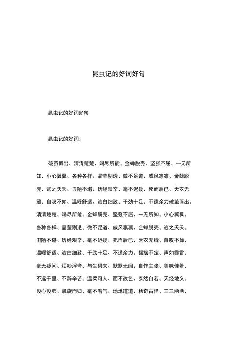 本篇文章给大家谈谈昆虫记中的好词好句摘抄大全,以及昆虫记中的好词好句有哪些对应的知识点,希望对各位有所帮助,不要忘了收藏本站喔。