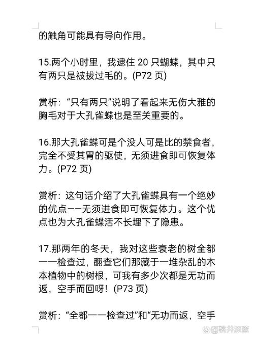 昆虫记好词好句摘抄 好词:为饥饿所驱:形容昆虫因饥饿而驱使行动。为口渴所苦:描述昆虫因缺水而遭受的痛苦。毫无疑问:表示确定无疑,没有疑问。与生俱来:指天生就有,生来就具备的特质。默默无闻:形容昆虫等生物不为人知,无声无息。威风凛凛:形容气势威严,令人敬畏。