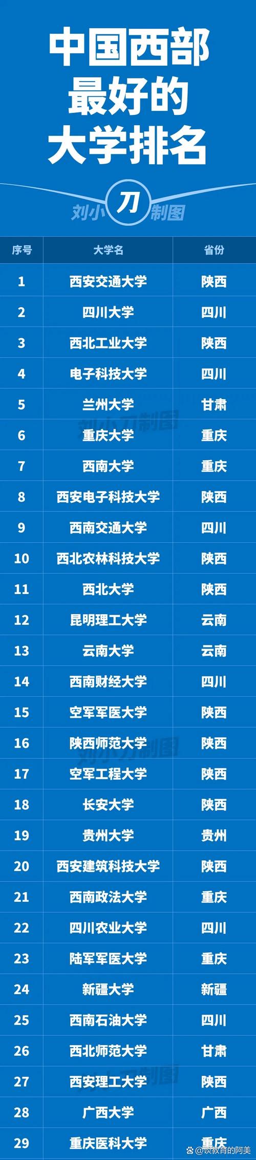 西部大学排名一览表