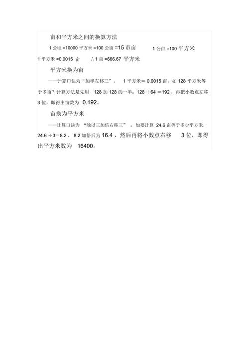 2、一亩地大约是6667平方米,长333米,宽20米。平方米换为亩:平方米换为亩的计算口诀为“加半左移三”,如128平方米等于多少亩?计算方法是先用128加128的一半,即128+64=192,再把小数点左移3位,即得出128平方米的亩数为0.192。