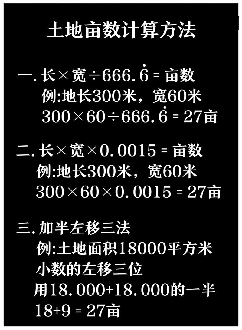 3、一亩地约667平方米,长宽依据面积而灵活确定。分析:一亩=667平方米,面积公式:长×宽。假设长=30米,则宽=667/30=22米。