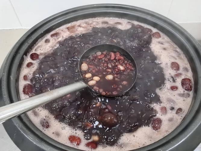 煮沸后转小火:待水煮沸后,将火候调小,改用文火继续熬煮,以确保豆子能够均匀受热并充分熟化。不断搅拌:在熬煮过程中,不时地用勺搅动腊八粥,以防止豆子粘锅或糊底。检查豆子熟度:试吃检查:在熬煮一段时间后,可以取出一两颗豆子试吃,检查其是否已煮熟。
