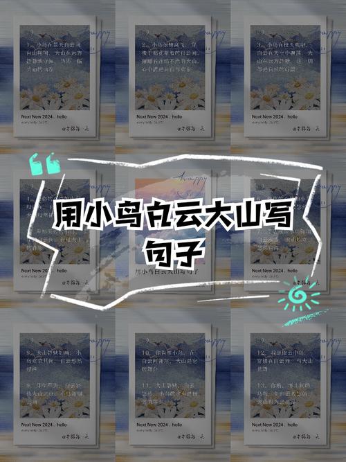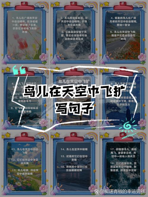 2、“小鸟一会儿一会儿”造句为:湛蓝的天空中,几朵白云飘过,有成群的小鸟飞过,一会儿飞成人字形,一会儿飞成一字型,远处看起来十分壮观。造句指懂得并使用字词,按照一定的句法规则造出字词通顺、意思完整、符合逻辑的句子。依据现代语文学科特征,可延伸为写段、作文的基础,是学生写好作文的基本功。