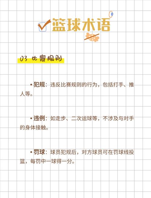 2、在篮球的世界里,术语是沟通战术策略的关键,下面是一些最常见的中英文篮球术语,帮助你深入理解这项运动的精髓: Airball: 当投篮失误,球没有碰到篮筐、篮板、网或是后板时,我们称之为篮外大空心。这通常是技术上的短板或关键时刻的遗憾。