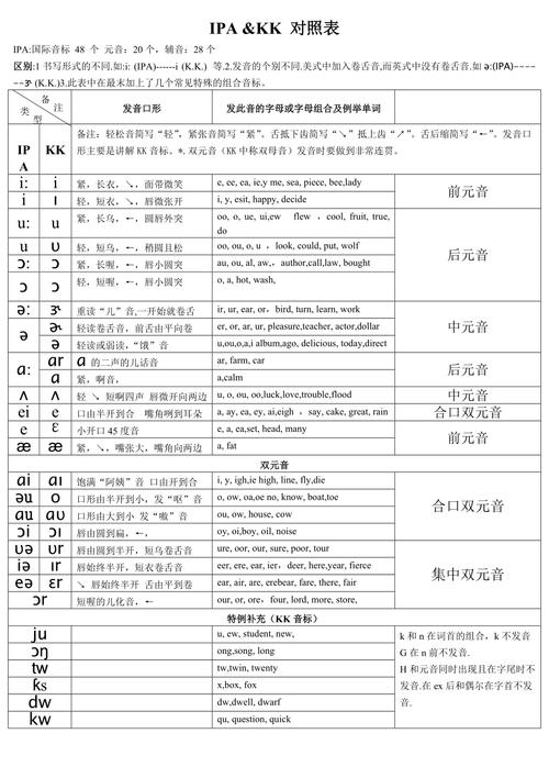 在英语发音学习中,我们通常会遇到KK音标和国际音标这两种不同的音标系统。KK音标是指约翰·S·肯yon与托马斯·A·诺***同开发的音标系统,主要用于描述美式英语的发音。