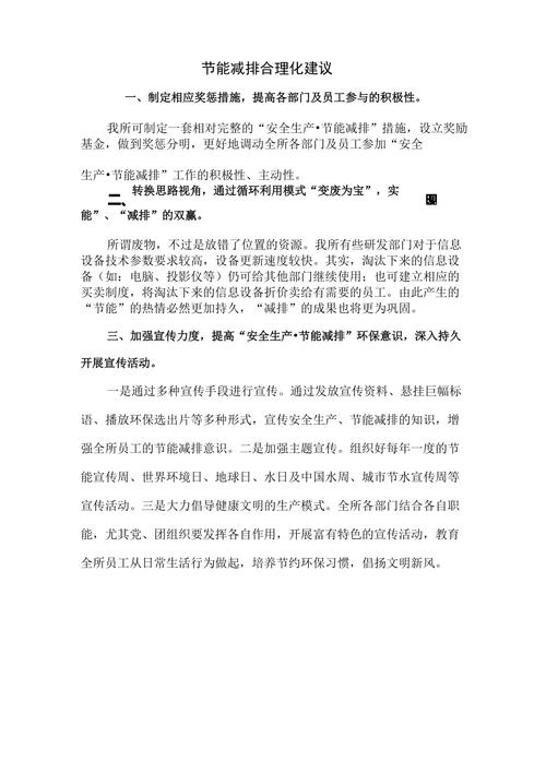 做好节能降耗工作的方法如下:明确工作目的 节能降耗的主要目的是加强能源管理,科学合理地利用能源、资源,杜绝浪费现象,从而提高企业的经济效益。遵循工作原则 坚持标准管理:全方位实施数字化节能管理,通过数据指标来分析节能降耗的成效。