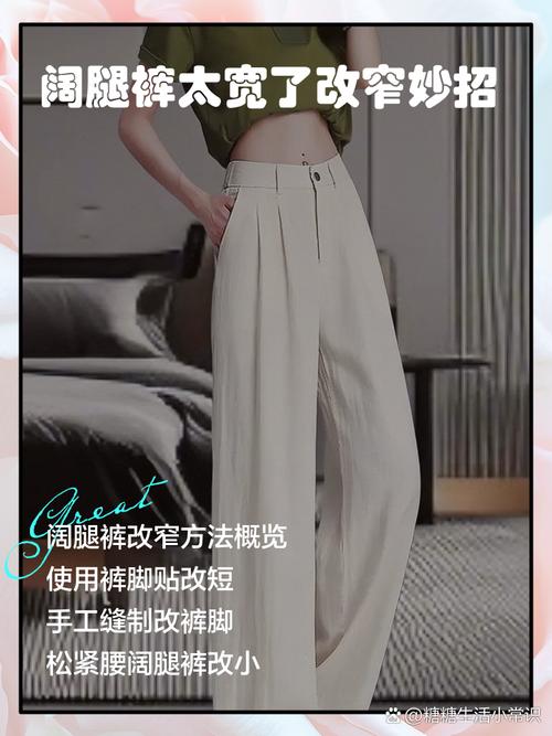 这种方法适合腰部较宽松且布料有一定余量的裤子。 方法二:也可以拆掉原来的腰部缝线,重新裁剪合适宽度的布条作为新的腰部,再缝到裤子上。这样能更精准地调整腰部大小。