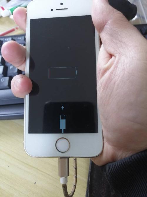 刚买的苹果5s。没电了。关机充电,界面显示红格闪动。旁边还有一个雷电符...
