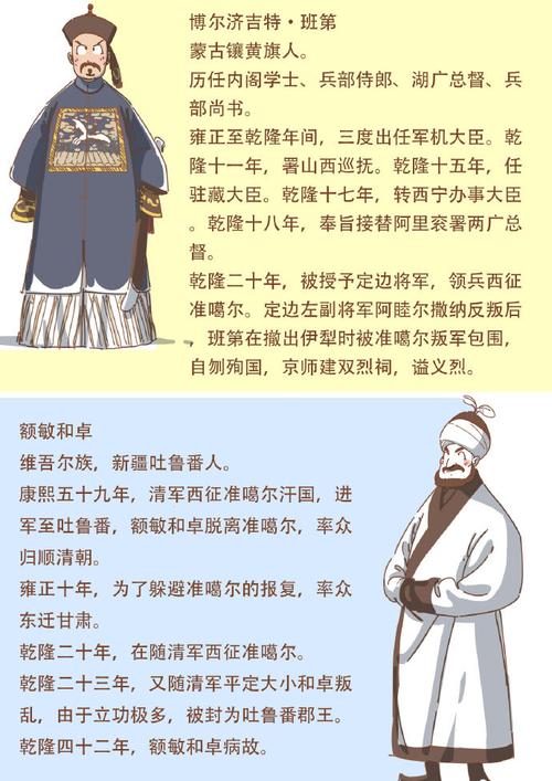 2、清朝二十四臣的名单是完整的,但可能存在不同版本或理解上的差异。清朝历史上确实有一系列杰出的功臣,他们为清朝的繁荣和稳定做出了重要贡献。以下是清朝二十四臣的完整名单,并稍作解释:多尔衮:清初杰出的政治家和军事家,对清朝的建立和巩固起到了关键作用。