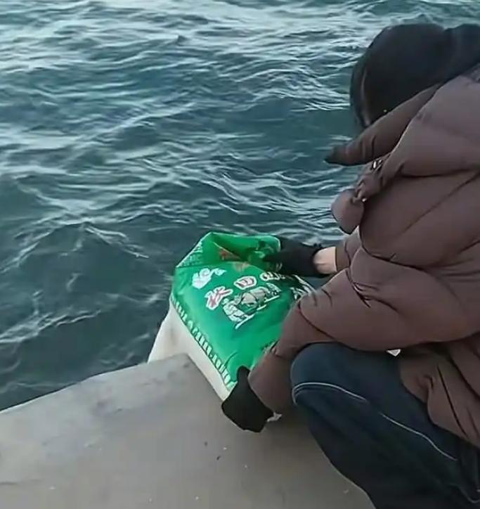现场视频显示,"放生者"们身着统一服装,将包装完好的大米整袋投入海中。这些未拆封的塑料袋在潮水中沉浮,很快就会被海浪撕碎,变成危害海洋生物的微塑料污染。更讽刺的是,他们口中念诵的"祈福经文",与塑料袋哗啦作响的噪音形成了荒诞的二重奏。海洋专家痛心地指出:"这不是放生,而是对海洋的双重谋杀——既浪费粮食,又制造污染。"