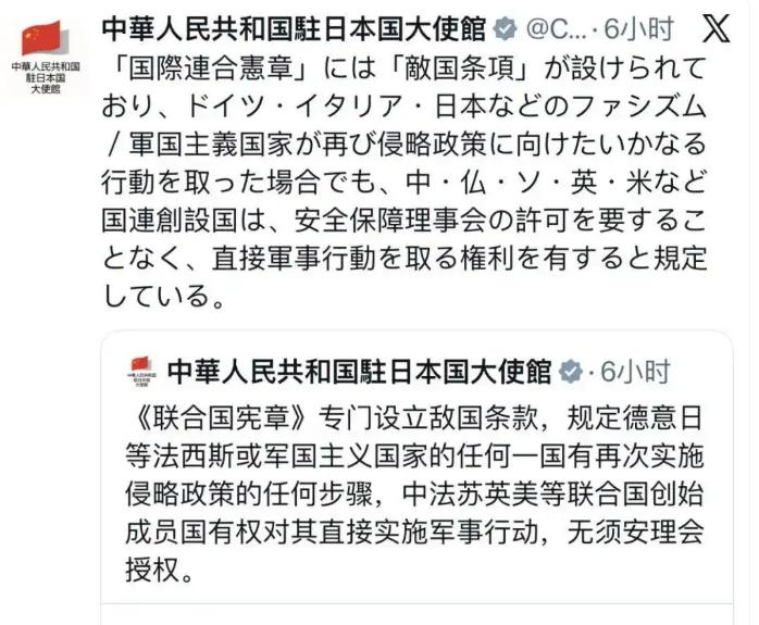 "敌国条款"的存在不是历史的陈迹,而是活的法律。它提醒世人:和平需要捍卫,正义需要坚守。那些妄图否定历史、重走军国主义老路的势力必须明白,国际社会不仅有记忆,更有制约的利剑。中国的表态既是对历史的致敬,也是对未来的担当。