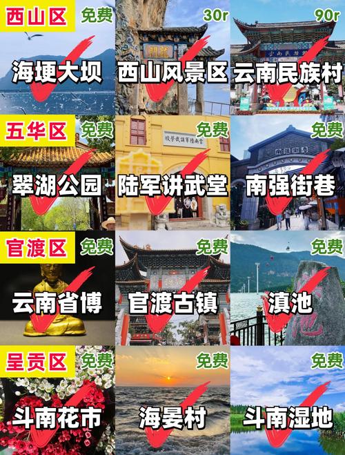 Q:滇池和海埂大坝有什么区别?A:滇池是湖泊总称,海埂大坝是滇池东北岸的堤坝,观鸥和拍照视角更好。Q:民族村适合带老人小孩吗?A:适合!园内电瓶车可租,表演互动性强,但面积较大建议穿舒适鞋。