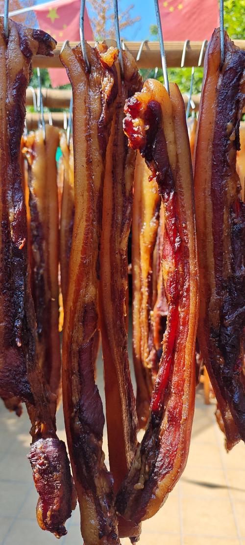 影响腊肉的口感和风味。同时,清洗还可能引入新的细菌,不利于腊肉的保存。晾晒注意事项:晾晒腊肉时,应将其挂在通风良好、阳光充足的地方,避免潮湿和阴暗的环境。晾晒的时间根据天气和腊肉的大小而定,一般需要晾晒至腊肉表面干燥、肉质紧实。因此,在腊肉腌好后,直接晾晒即可,无需清洗。