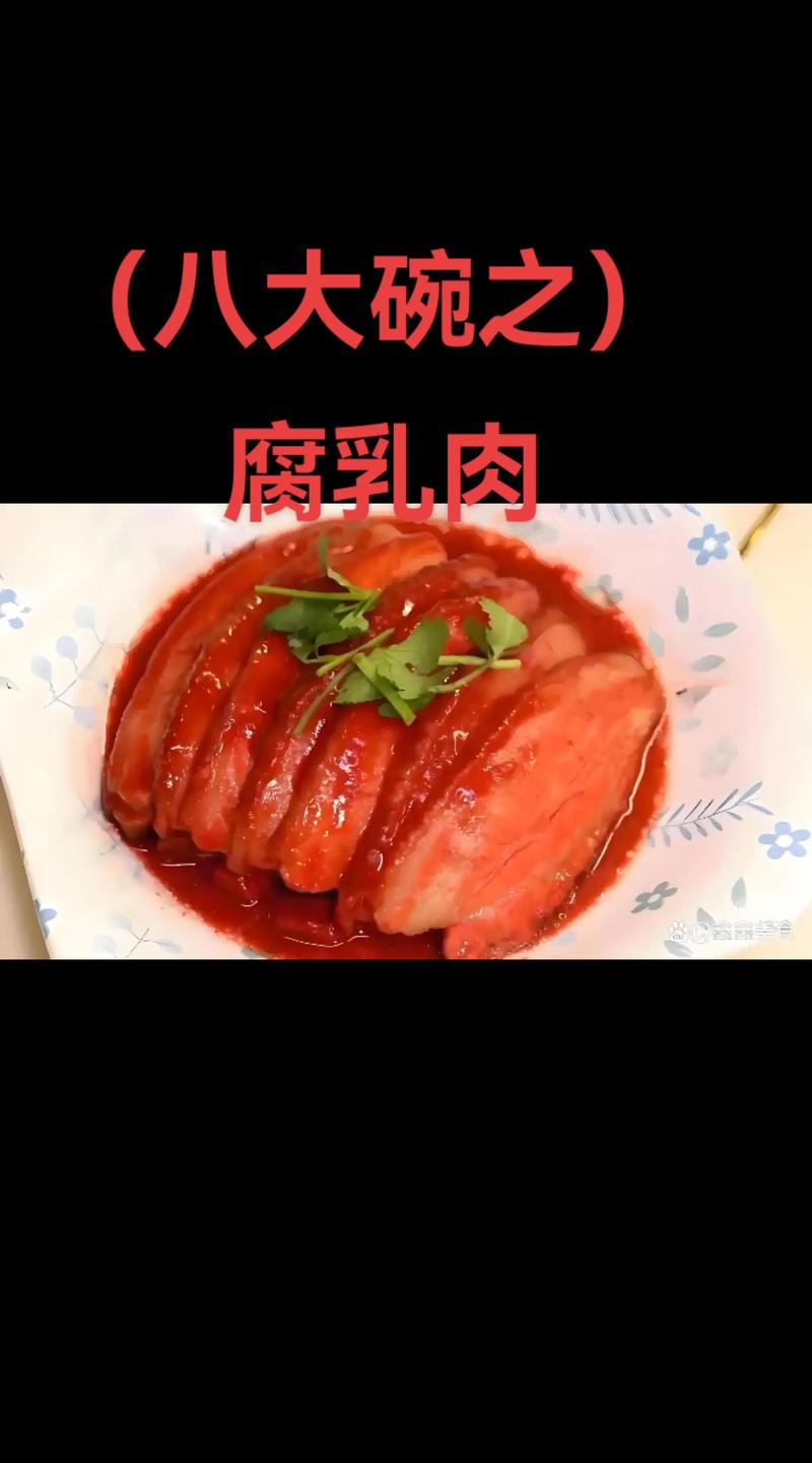 2、腐乳肉,即酱豆腐肉,是一道常见的名菜,主要食材是五花肉和豆腐乳,但中国南北地区做法稍有差异。成品色泽红亮,肥而不腻,是春夏的时令菜肴。猪五花肉煮熟,再油炸沥净油,放入红卤锅内酱上红色切片定碗,上屉蒸40分钟,扣入汤盘,浇上卤汁即成。