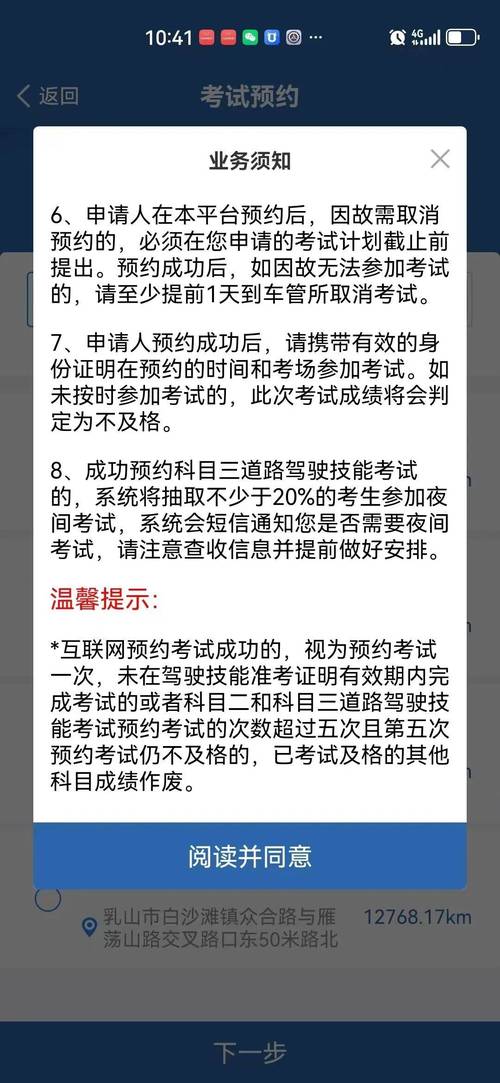 快速预约补考的方法 在线预约:打开浏览器,搜索并进入“交通安全综合服务管理平台”。选择所在省份,登录个人账户,填写身份证、手机号和验证码等必要信息。选择用户类型,阅读并同意业务须知。进入预约界面,选择科目预约日期和场次。确认报考信息无误后,点击提交,等待短信通知预约结果。