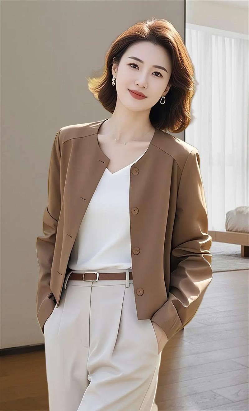 卡其色权利套装 卡其色的权利套装是职场女士的经典选择,它不仅能够展现出女性的干练与优雅,还能通过卡其色的高级感,提升整体的气质与涵养。卡其色配饰 卡其色的包包、鞋子、腰带等配饰,能够点亮深色、点缀浅色,四季适用。在夏日里,选择一款卡其色的草编包或草编帽,更是能够营造出一种轻松愉悦的氛围。