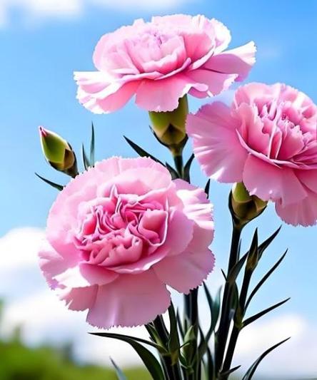 4、历史上,康乃馨是法国国花,代表着自由、平等和博爱,而粉红色的康乃馨则表现出柔情和浪漫的美感。玫红色康乃馨在这一基础上又毫不逊色地具现出坚定不移的爱和追求幸福的倾向。在西方文学和艺术中,玫红色康乃馨被称为“爱情之花”,常用于描绘情感的细腻和丰富性,给人以深刻而动人的感受。