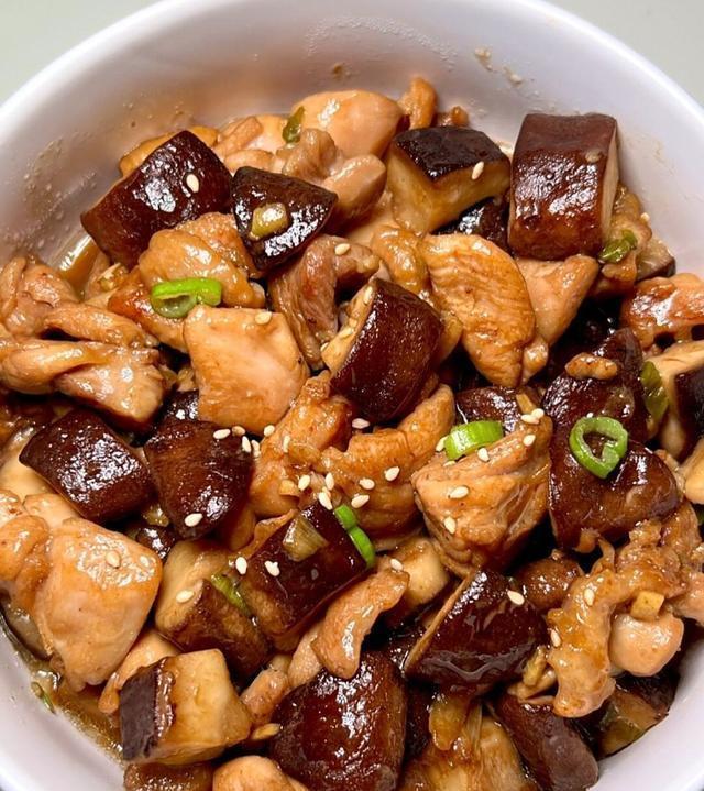 2. 热锅少油滑炒鸡丁至表面微焦,盛出备用;香菇切片,葱姜蒜切末