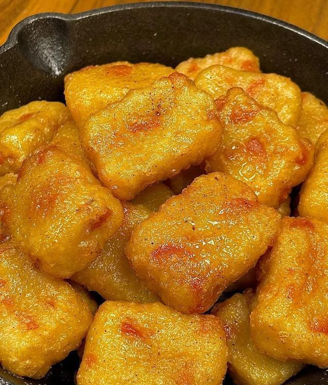 想吃外皮更酥脆的, 油温再升高一些,把土豆饼放进去复炸30s,捞出控油;