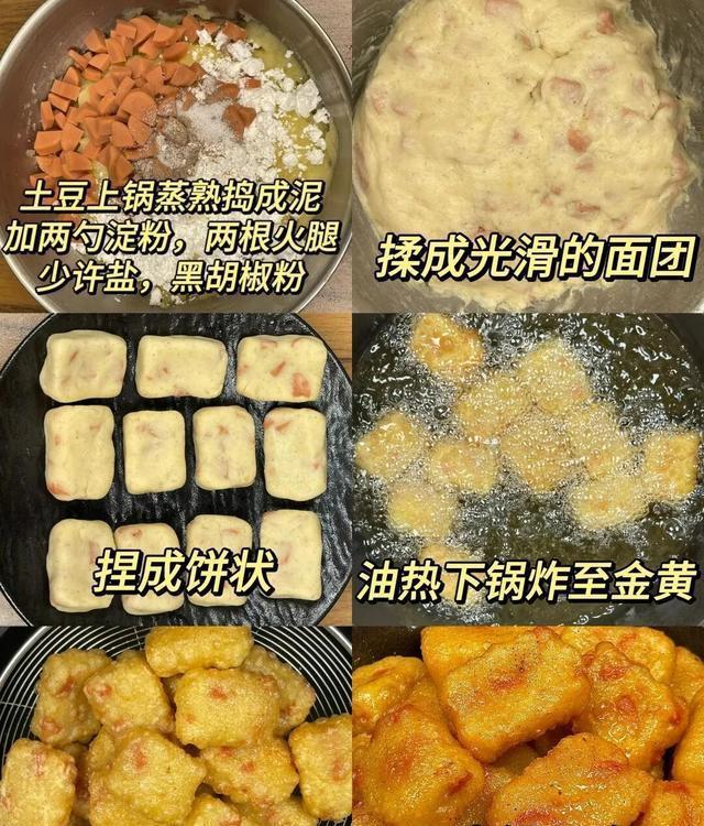 这么做出来的土豆饼简直要把我香迷糊,外面酥酥脆脆,里面软软糯糯,还有咸香的火腿,蘸着番茄酱,真的巨好吃!