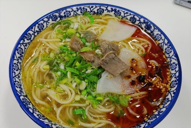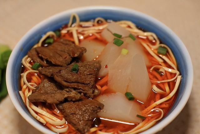 7. 关火撒香菜末,喜辣可加油泼辣子,先喝一口原汤,再吃萝卜与牛腩,最后连面带汤一扫而光。