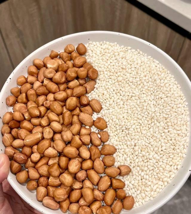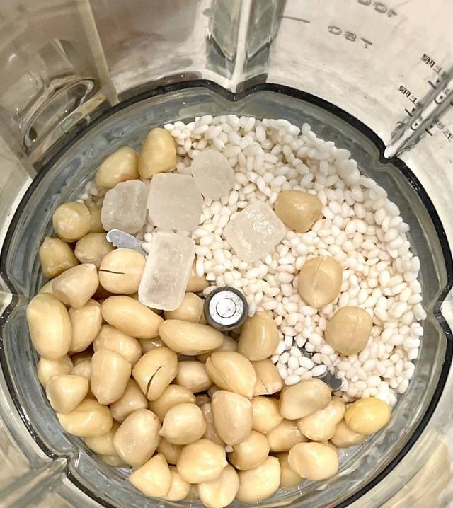 2. 去皮花生,沥干糯米去皮的花生浑身散发着坚果的香气,而沥干的糯米则准备迎接焕发的变身。每一个步骤都蕴含着制作者的心意。