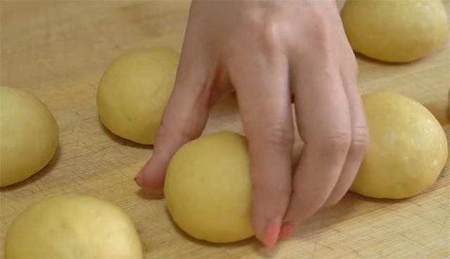 2.面发好以后拿出来揉匀排气,大约需要揉三分钟左右,然后搓成长条,切成大小均匀的小面剂,把每一个面剂揉圆。