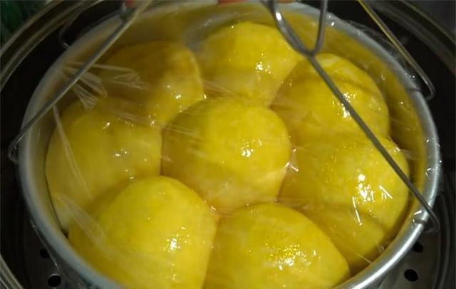 4.醒发好以后,在表面都刷上一层食用油,盖上耐高温的保鲜膜,冷水放进蒸锅,水开后大火蒸40分钟。